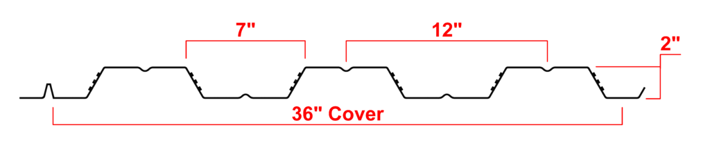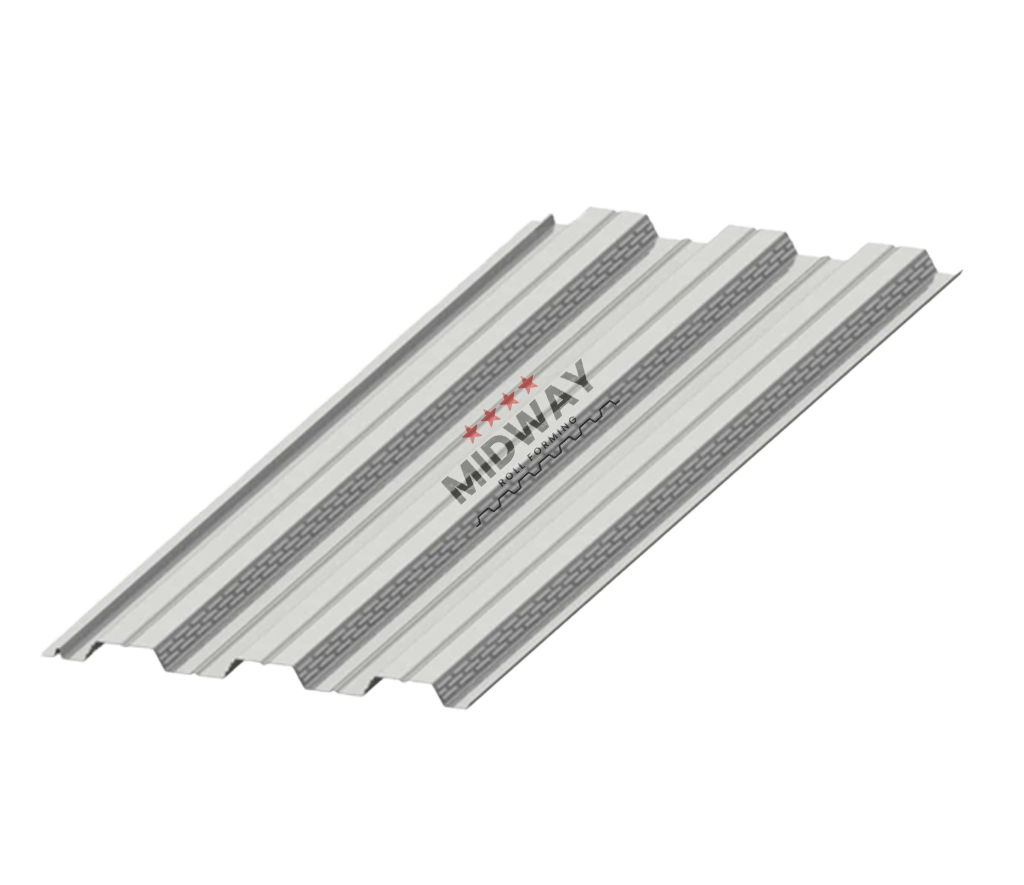 Midway Roll Forming offers 2″ Composite Deck in 22, 20, 18, 16 gauge offering G60, G90 and painted finishes. All Composite deck is minimum standard yield strength of 50 ksi.