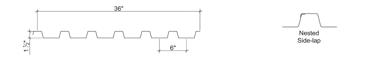 Midway Roll Forming manufactures and stocks 1.5″ Form Deck in 22, 20, 18 and 16 gauge offering G60, G90 and painted finishes. All Form deck is minimum standard yield strength of 50 ksi.